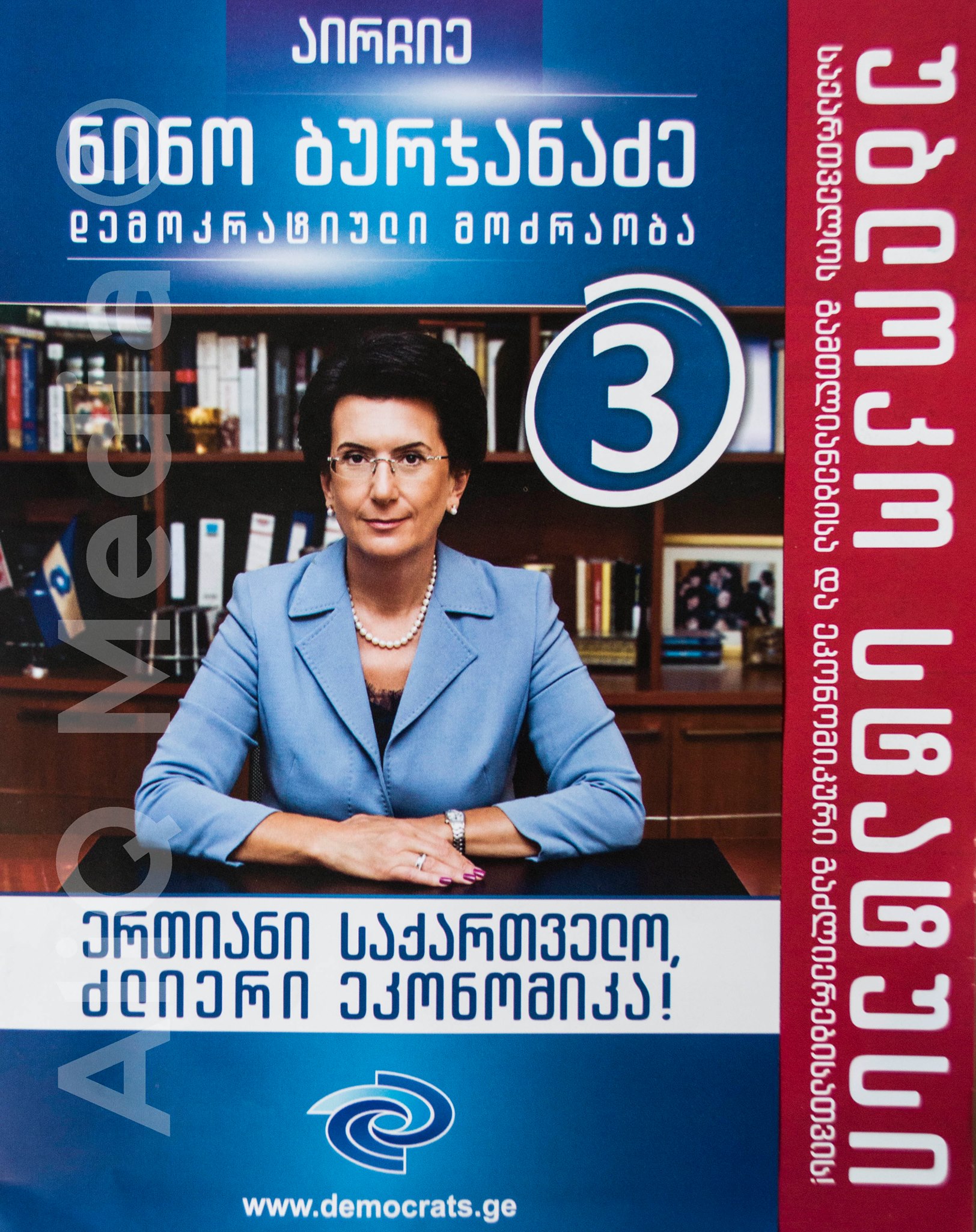 Վրաստանի խորհրդարանի նախկին խոսնակ Նինո Բուրջանաձեի նախաձեռնությամբ հիմնված «Ժողովրդավարական շարժում – միասնական Վրաստան» կուսակցությունը մոտ 8 տարվա պատմություն ունի: Խորհրդարանական ընտրություններին կուսակցությունը «Միավորված ժողովրդավարական շարժում» կուսակցության հետ համատեղ հանդես է գալիս մեկ դաշինքով՝ «Նինո Բուրջանաձե-ժողովրդավարական շարժում» անունով: Քաղաքական միավորումը ընտրություններին կմասնակցի 3-րդ համարի ներքո: