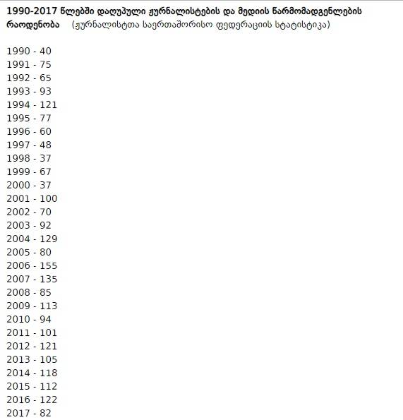 Լրագրողների սպանության ամենամյա վիճակագրությունը՝