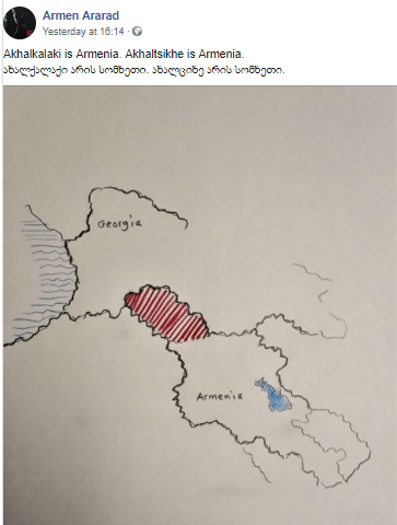 Պատերազմի շրջանում Վրաստանի տարածքում բնակվող օգտատերերի համար «ֆեյսբուք» սոցիալական ցանցում հաճախ էին միացվում նպատակաուղղված գովազդներ՝ արմենոֆոբ բնույթի հրապարակումներով կամ լուսանկարներով: Այսպես, վրաց հանրության ուշադրության կենտրոնում էր հայտնվել մի քանի հրապարակում, որտեղ նշված էր՝ Ախալցիխեն ու Ախալքալաքը Հայաստան են: Armen Ararad անվամբ ֆեյսբուքյան էջը տարածել էր հետևյալ լուսանկարը՝ «Ախալցիխեն Հայաստան է, Ախալքալաքը Հայաստան է» վերտառությամբ: Այս հրապարակումը վճարված գովազդով տարածվում էր սոցիալական ցանցում՝ դառնալով հակահայկական բնույթի մեկնաբանությունների առիթ: