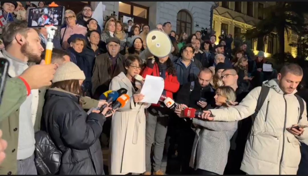 Թբիլիսիի պետական համալսարանի առաջին մասնաշենքի տարածքում Վրաստանի ակադեմիական ոլորտի ներկայացուցիչներն ընթերցել են ընդունած բողոքի մանիֆեստը։