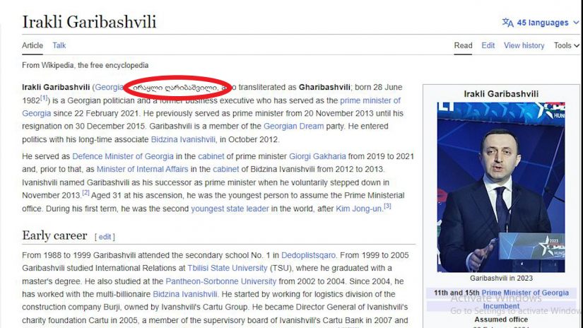 Անգլալեզու Վիքիպեդիայում Վրաստանի վարչապետ Իրակլի Ղարիբաշվիլիի անունը փոխվել է «Իրակղլի», բայց շուտով կրկին դարձել է Իրակլի։
