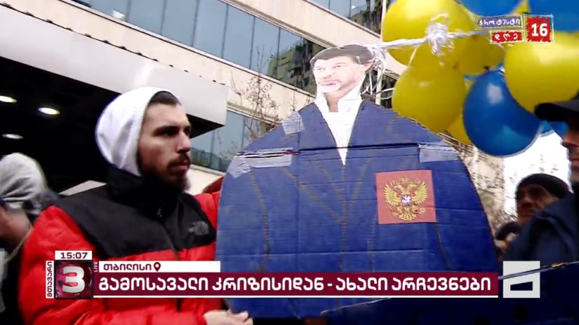 Թբիլիսիի քաղաքապետարանի մոտ նրանք օդ են բարձրացրել Կախա Կալաձեի պատկերով փուչիկ, վրան նաև Ռուսաստանի զինանշանը։ Թբիլիսիի քաղաքապետարանի մուտքի մոտ ոստիկանական ուժերի հատուկ մոբիլիզացիա է։ Հանրահավաքի մասնակիցները պարզել են նաև ոստիկանների կողմից ծեծի ենթարկված ցուցարարների լուսանկարները։