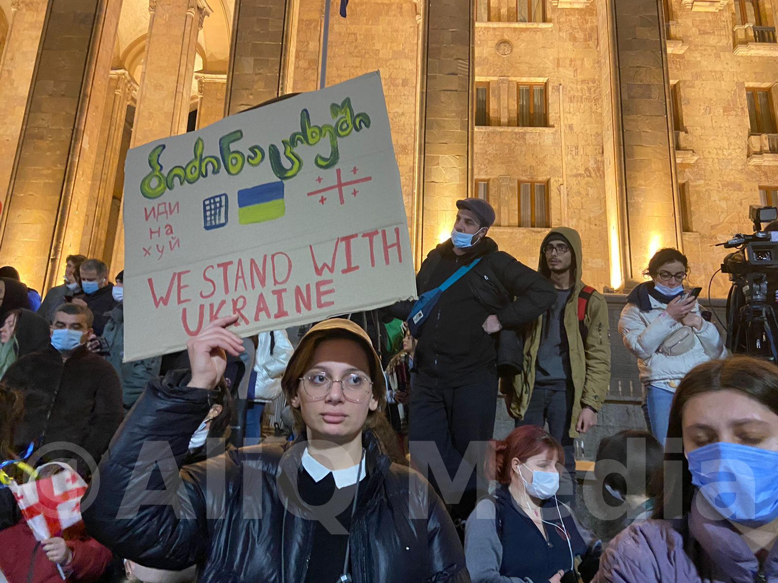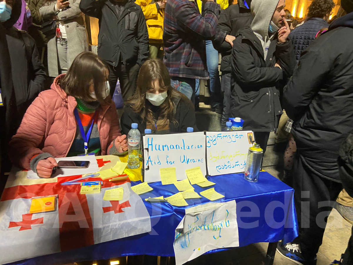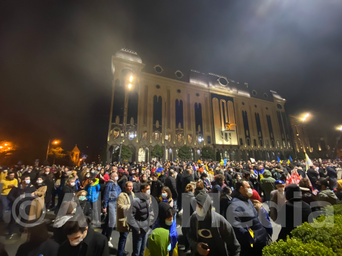 Վրաստանի խորհրդարանի մոտ բողոքի ցույց է անցկացվում՝ ի աջակցություն Ուկրաինայի, միաժամանակ, ցույցի մասնակիցները պահանջում են վարչապետ Իրակլի Ղարիբաշվիլիի հրաժարականը։