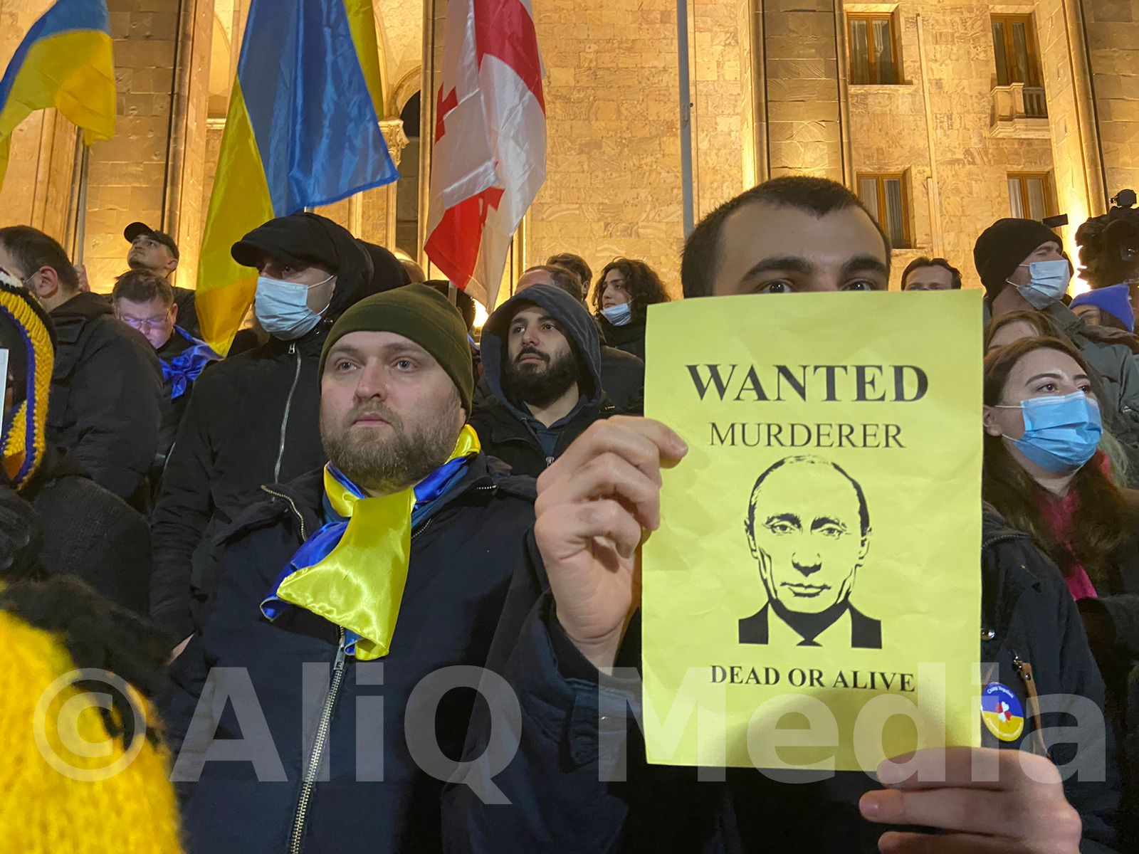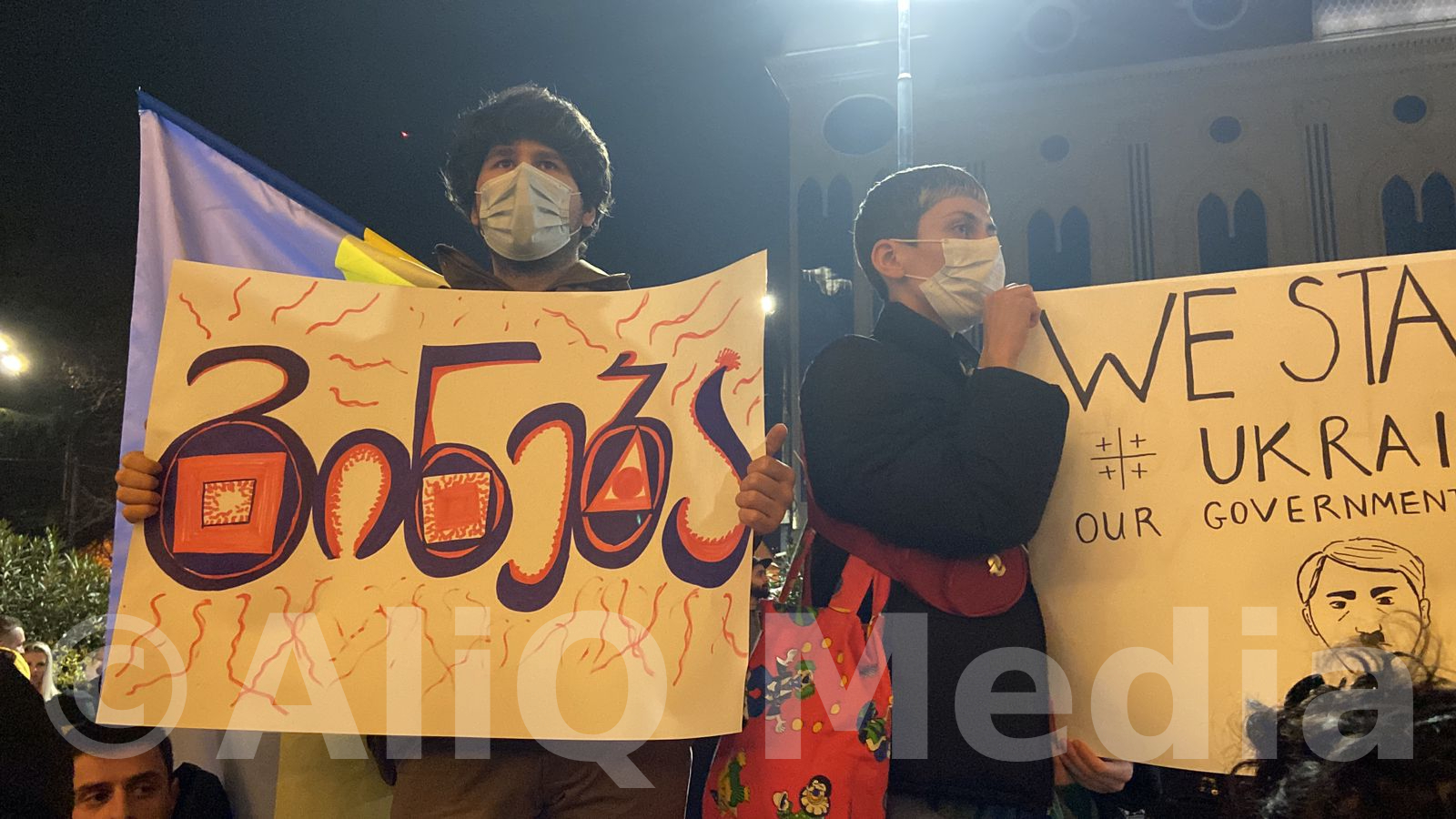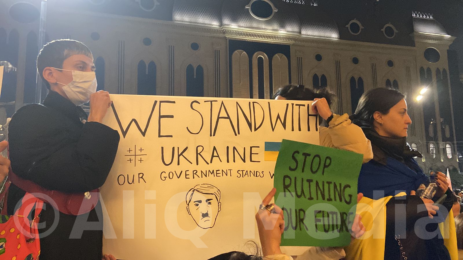 Վրաստանի խորհրդարանի մոտ բողոքի ցույց է անցկացվում՝ ի աջակցություն Ուկրաինայի, միաժամանակ, ցույցի մասնակիցները պահանջում են վարչապետ Իրակլի Ղարիբաշվիլիի հրաժարականը։