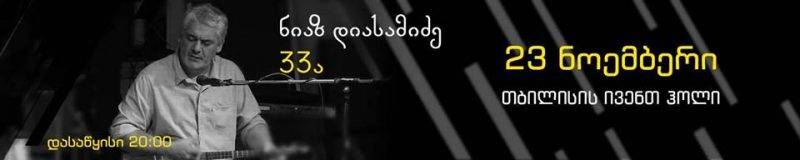 Վրացական ֆոլկ-ռոք ժանրի երաժշտության սիրահարների համար. Նիազ Դիասամիձեն ու 33ա խումբը նոյեմբերի 23-ին համերգ կունենան Թբիլիսիի ֆիլհարմոնիկ դահլիճում: Մանրամասները՝ այստեղ: