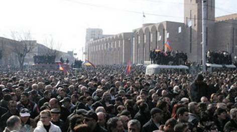 სომხეთში მეხუთე საპრეზიდენრტო არჩევნების შემდეგ, რომელიც 2008 წლის 19 თებერვალს ჩატარდა მაშინდელმა პრემიერ-მინისტრმა სერჟ საგსიანმა გაიმარჯვა, რაც მეორე ადგილზე გასულმა სომხეთის ყოფილმა პრეზიდენტმა ლევონ ტერ-პეტროსიანმა გაასაჩივრა. ერევანში მშვიდობიანი საპროტესტო აქციები 20 თებერვალს დაიწყო და დაახლოებით, 25 ათასი ოპოზიციის მომხრე ქუჩაში გამოვიდა. ტერ-პეტროსიანმა განაცხადა, რომ ჯარი ხალხის წინააღმდეგ არ გამოვიდოდა, რადგან მას მხარს უჭერდნენ თავდაცვის მინისტრის მოადგილეები. დემონსტრაციების მესამე დღეს მოედანზე 30 000 ადამიანი იმყოფებოდა.