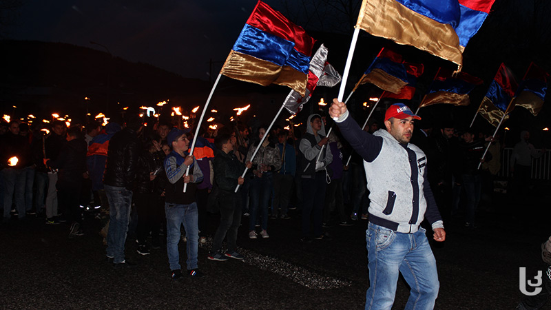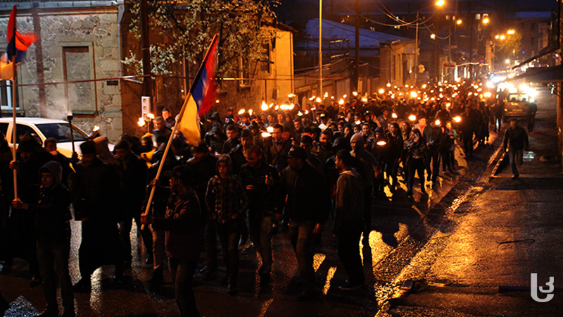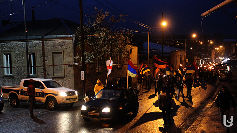 შეძახილებით: „აღიარე“, „მკვლელი თურქები”, ასევე, ხმის გამაძლიერებლებით ჩართული მუსიკებით, ანთებული ჩირაღდნებითა და სომხეთის დროშებით, ახალციხეში მცხოვრებმა სომეხი ეროვნების მოქალაქეებმა გენოციდის 102–ე წლისთავის აღნიშვნა დაიწყეს.