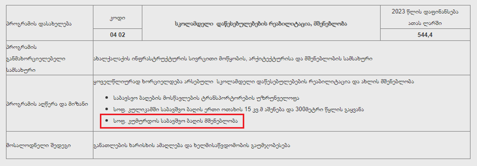 ბიუჯეტში, თუმცა იგივე საკითხი ასევე გვხვდება 2023 წლის ბიუჯეტშიც.