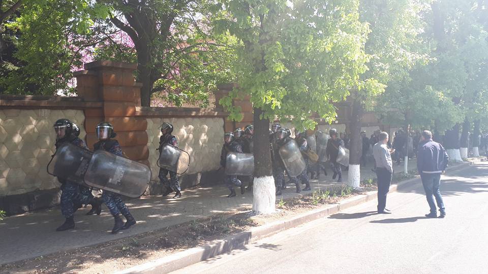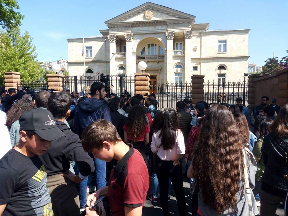 10:55- მომიტინგეების რიცხვი იზრდება. პოლიციამ დემირჭიანის ქუჩაზე ცოცხალი კედელი განათავსა. მომიტინგეები უკვე პრეზიდენტის სასახლესთან არიან. აქციის ლიდერი ნიკოლ ფაშიანი პოლიციელებისგან ძალის გამოუყენებლობას ითხოვს.