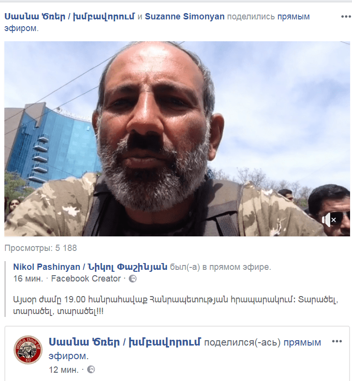 ნიკოლ ფაშინიანის ვიდეომოწოდება გაავრცელა ასევე მოძრაობა „სასნა წრერმა“.