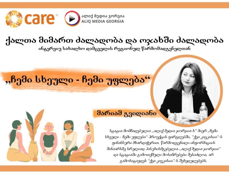 სტატია მომზადებულია „ალიქ მედია ჯორჯია-ს“ მიერ „ჩემი სხეული – ჩემი უფლება“ პროექტის ფარგლებში, “ქეა კავკასია“-ს ფინანსური მხარდაჭერით. წარმოდგენილი ინფორმაციის შინაარსზე სრულიად პასუხისმგებელია „ალიქ მედია ჯორჯია“ და სტატიაში გამოთქმული მოსაზრებები შესაძლოა, არ გამოხატავდეს “ქეა კავკასია“-ს შეხედულებებს.