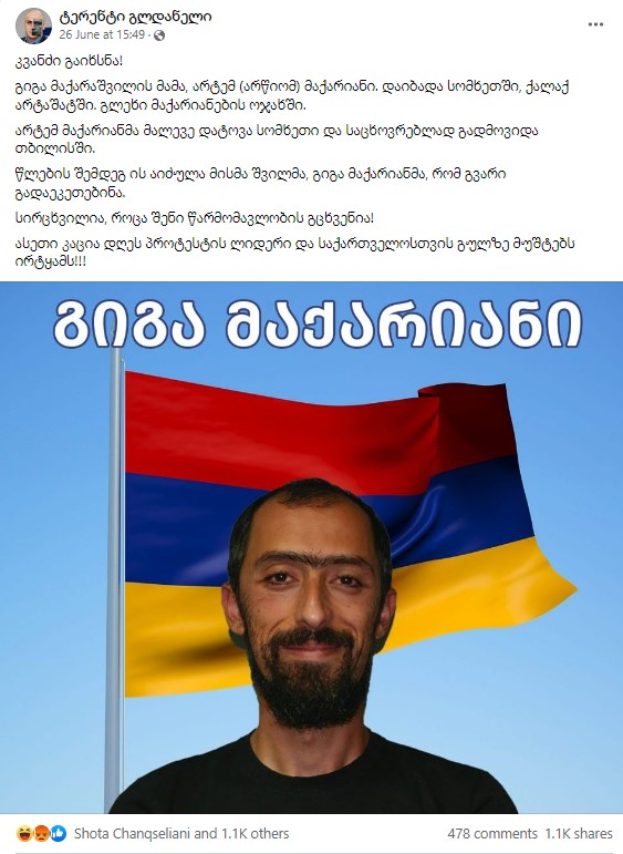 ცოტა ხნის წინ, თბილისში “რუსული კანონის” გამო მიმდინარე დემონსტრაციების ფონზე, მომინტიგეების დისკრედიტაციის მიზნით, ეთნიკურად სომხებით დასახლებულ სამცხე-ჯავახეთში სხვადასხვა არხზე გავრცელდა ინფორმაცია, რომ აქციის მონაწილეები იყვნენ ლგბტ აქტივისტები.