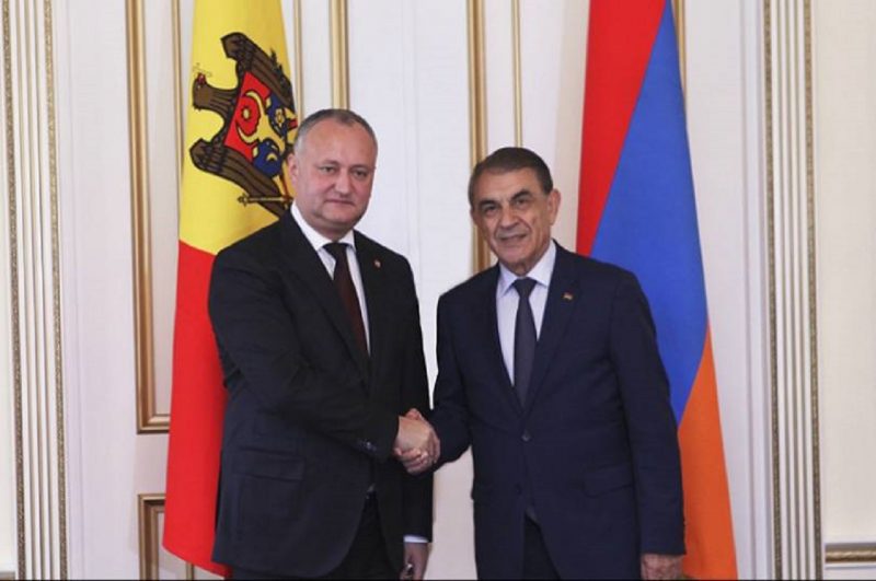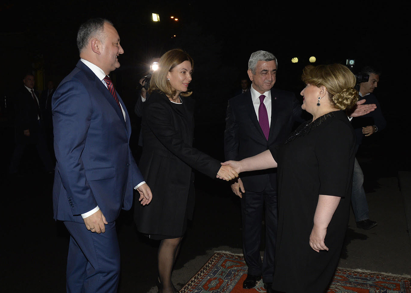 ოფიციალური ვიზიტით სომხეთში მყოფი მოლდოვის პრეზიდენტი იგორ დოდონისთვის დღეს პრეზიდენტ სერჟ სარგსიანის სახელით ოფიციალური მიღება გაიმართა.