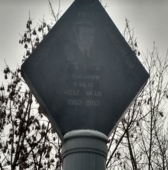 როგორც “პრაიმტაიმმა” გაარკვია, აზერბაიჯანის ეროვნული გმირის მემორიალური დაფა პორტრეტით, საჯარო სკოლის შენობაზე იყო განთავსებული, 2016 წელს კი, როდესაც საგანგებოდ შერჩეულ ტერიტორიაზე, სოფლის ცენტრში მდებარე სკოლის ეზოში, უფრო მასშტაბური კომპლექსი დადგეს, მემორიალური დაფა მონუმენტს შეუერთეს.