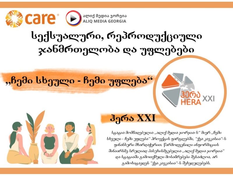 სტატია მომზადებულია „ალიქ მედია ჯორჯია-ს“ მიერ „ჩემი სხეული – ჩემი უფლება“ პროექტის ფარგლებში, “ქეა კავკასია“-ს ფინანსური მხარდაჭერით. წარმოდგენილი ინფორმაციის შინაარსზე სრულიად პასუხისმგებელია „ალიქ მედია ჯორჯია“ და სტატიაში გამოთქმული მოსაზრებები შესაძლოა, არ გამოხატავდეს “ქეა კავკასია“-ს შეხედულებებს.