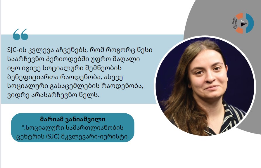 სოციალური სამართლიანობის ცენტრის  (SJC) მკვლევარი-იურისტი მარიამ ჯანიაშვილი  „ალიქ მედია საქართველოსთან“ საუბარში აღნიშნავს, რომ როდესაც პოლიტიკურ მანიპულაციაზე და სოციალურად დაუცველ ადამიანთა პოლიტიკური ინსტრუმენტალიზაციაზე არის საუბარი, პირველ რიგში მნიშვნელოვანია, ყურადღება გავამახვილო თვითონ სოციალური შემწეობის სისტემის ფუნქციონირების ძირითად გამოწვევებზე და იმ, მზარდ დამოკიდებულებაზე, რომელიც მოსახლეობაში შეინიშნება, განსაკუთრებით უკანასკნელი წლების განმავლობაში. მისი თქმით, როგორც სოციალური სამართლიანობის ცენტრის დაკვირვებამ და კვლევამ აჩვენა სულ უფრო  მეტი ადამიანი ერთვება საარსებო შემწეობის სისტემაში და იღებს სახელმწიფო სოციალურ გასაცემელებს.