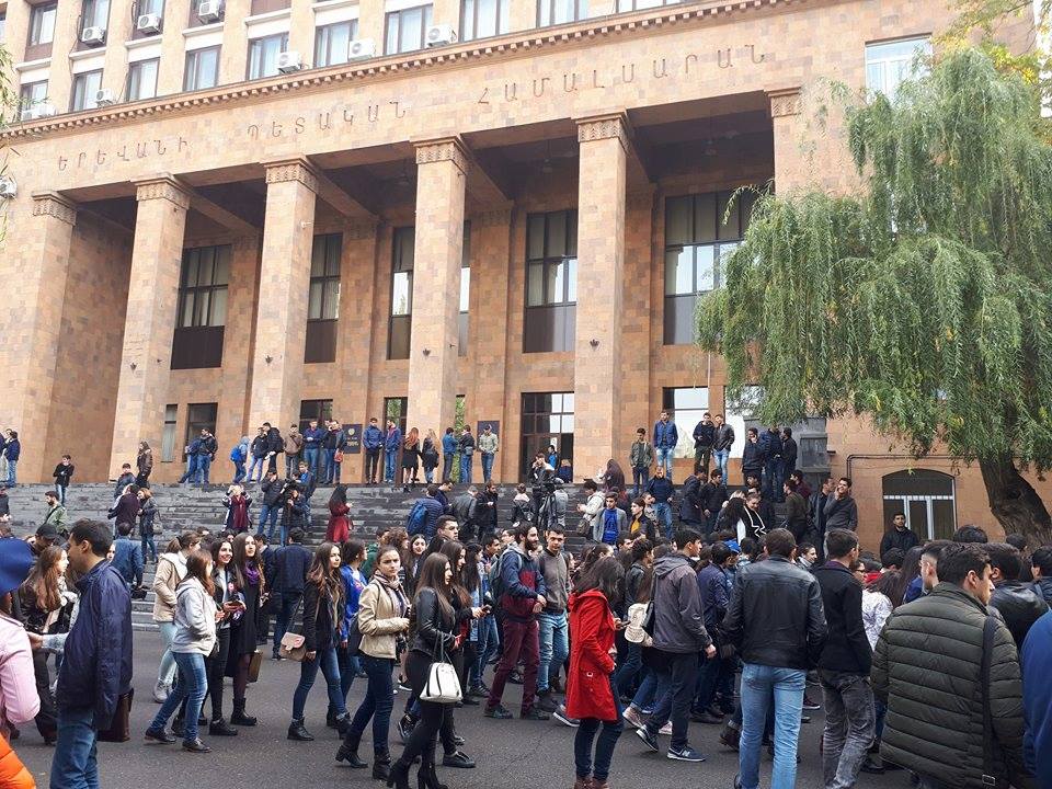 ერევნის სახელმწიფო უნივერსიტეტის სტუდენტები უკვე მესამე დღეა აკადემიური წლის აღების მოთხოვნით უნივერსიტეტის ეზოში საპროტესტო აქციებს მართავენ. სტუდენტები გამოდიან ლოზუნგებით “აკადემიური წელის უფლება უნდა იყოს”, “მეცნიერება უნდა იყოს,” “მეცნიერებისთვის.” ისინი ასევე მოუწოდებენ სხვა სტუდენტებს, რომ შეუერთდნენ.