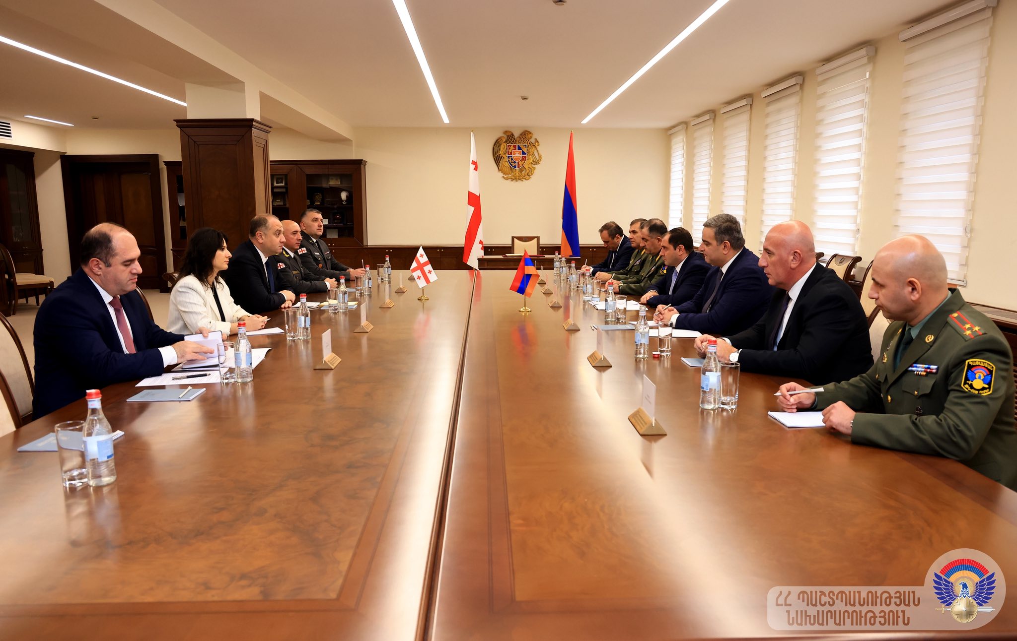Հայաստանի պաշտպանության նախարարություն (ՊՆ) վարչական համալիրում դիմավորման հանդիսավոր արարողությունից հետո տեղի է ունեցել Հայաստանի Հանրապետության (ՀՀ) պաշտպանության նախարար Սուրեն Պապիկյանի և Վրաստանի պաշտպանության նախարար Իրակլի Չիքովանիի առանձնազրույցը, որին հաջորդել է պատվիրակությունների ընդլայնված կազմով հանդիպումը: Այս տեղեկությունը հայտնել է ՀՀ պաշտպանության նախարարությունը:
