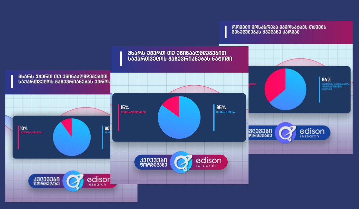 Ուսումնասիրության մեջ նշվում է, որ բնակչության 94 տոկոսը կարծում է, որ բնակչությունն արժանի է, որ Վրաստանը ստանա Եվրամիության թեկնածուի կարգավիճակ։