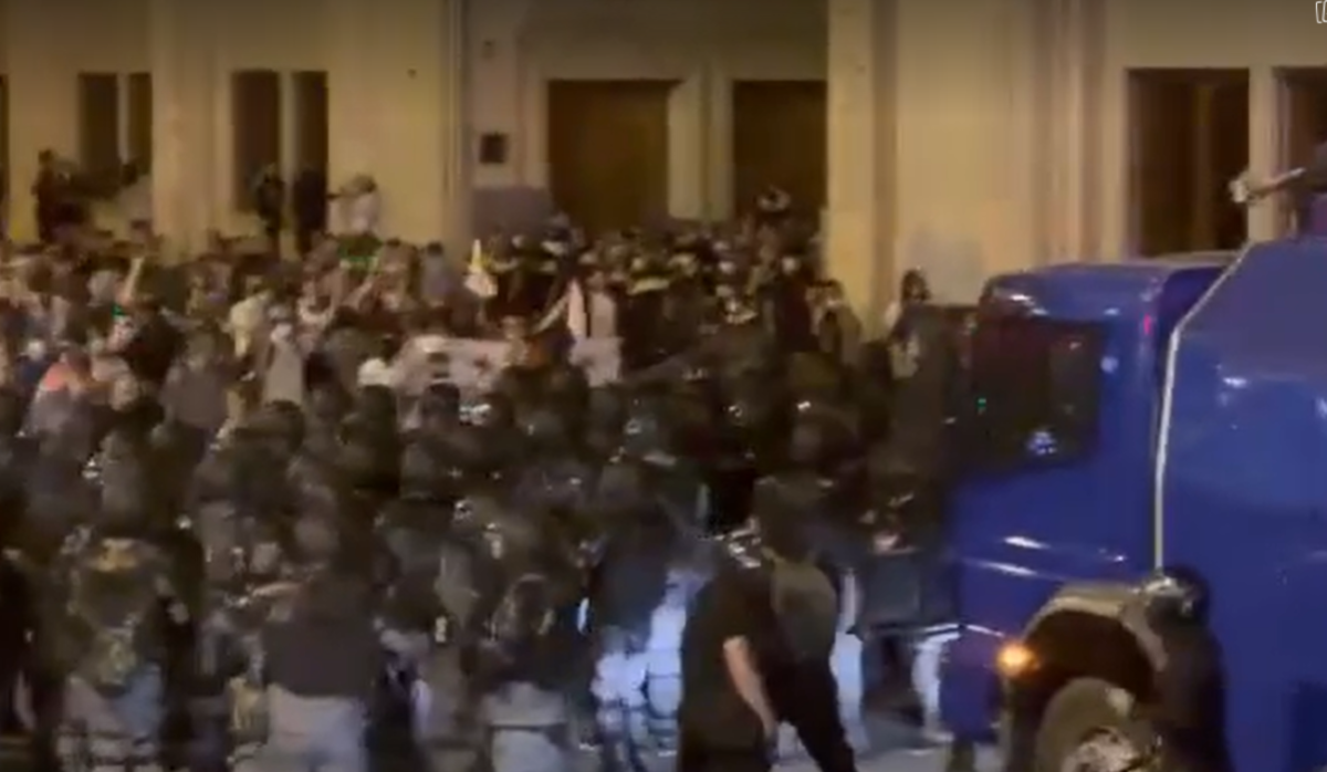 Քաղաքացիների վրա հարձակման հետ մեկտեղ, հատուկջոկատայինները սկսել են նաև ձերբակալել ցուցարարներին: Տեղում աշխատում է «Ալիք Մեդիա Վրաստան»-ի նկարահանող խումբը։ Ըստ նրանց՝ խաղաղ ցուցարարների նկատմամբ կիրառվել է արցուքաբեր գազ և «պղպեղի սփրեյ», որին ի պատասխան` ցուցարարները շշեր են նետել նրանց ուղղությամբ: