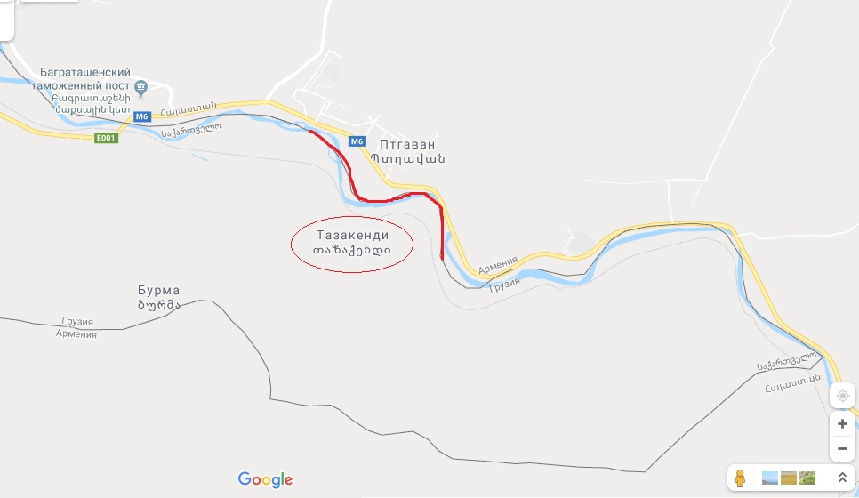 Ուշադրություն դարձնենք նաև այն փաստին, որ Թազաքենդ գյուղի տարածքում Վրաստանը Հայաստանից բաժանում է Դեբեդ գետը (սահմանագիծը հենց գետն է), հետևաբար, այդ տարածքում 10 կամ էլ 15 հա տարածք «զավթելու համար» հարկավոր է հատել Դեբեդ գետը, իսկ դա աննկատ անել պարզապես հնարավոր չէ: Դեբեդ գետը հայ-վրացական սահմանի բաժարարներից է հանդիսանում 100 տարուց ավելի: