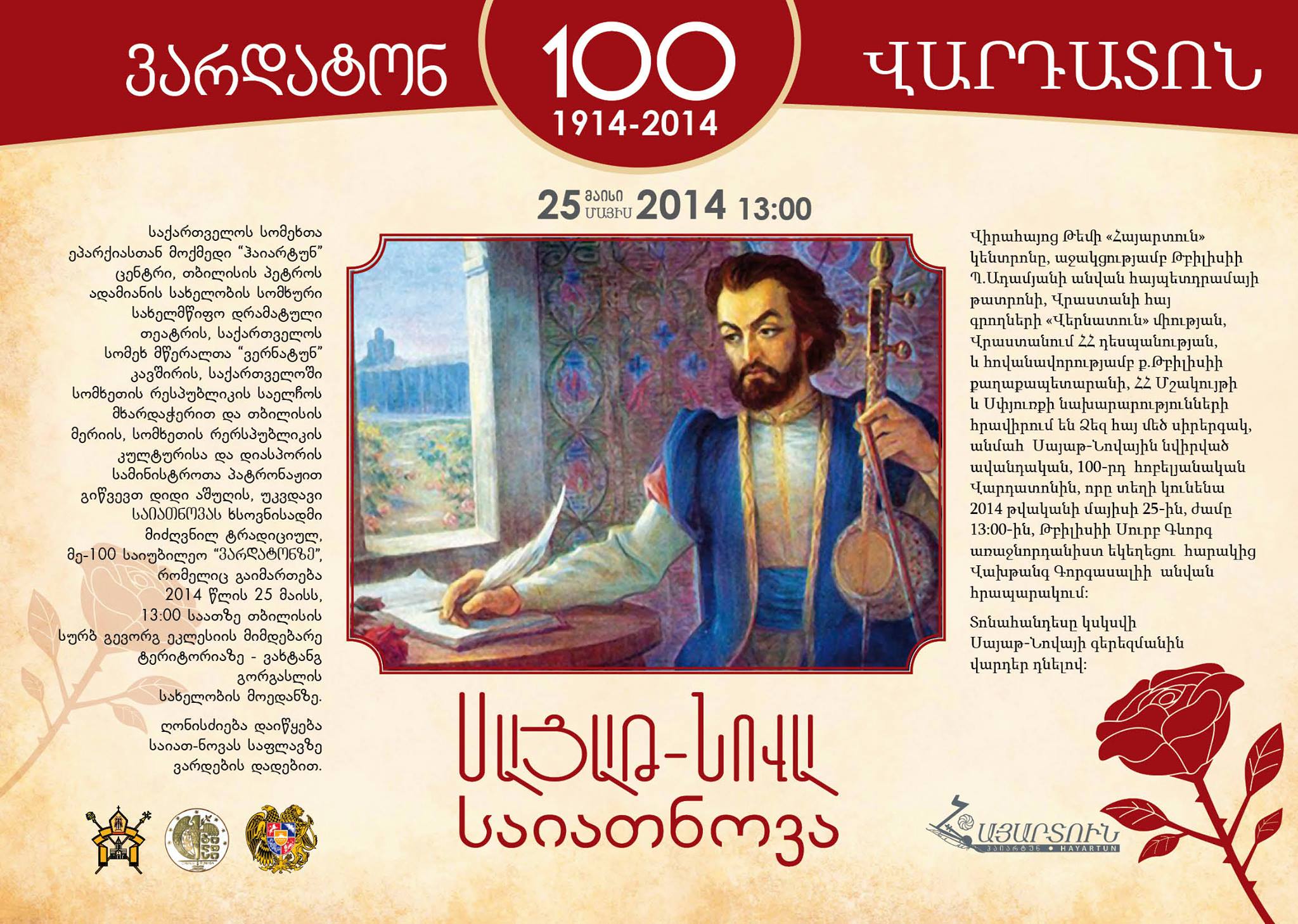 Նշենք, որ Մայիսի 29-ին Թբիլիսիի Սուրբ Գևորգ առաջնորդանիստ եկեղեցու հարակից տարածքում՝ Գորգասալի հրապարակում (Մեյդան) կանցկացվի Սայաթնովյան 108-րդ ավանդական «Վարդատոնը»: