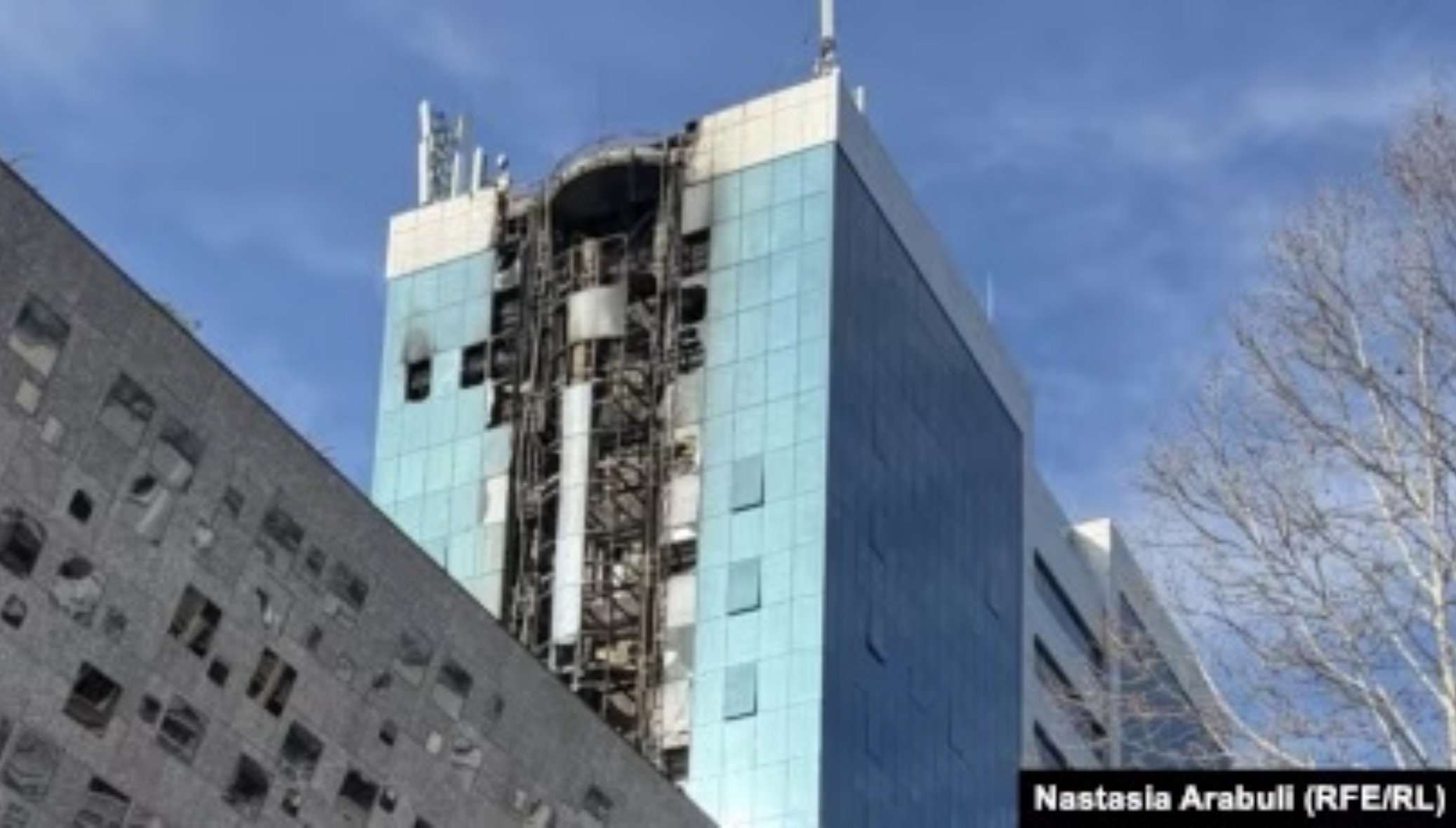 Հրդեհվել է շենքի ձախ կողմի հատվածը՝ մի քանի հարկ բարձրության վրա։