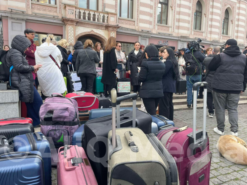 Նրանք երթին մասնակցում էին ճամպրուկներով՝ հայտարարելով, որ իշխող ուժը երկրը հասցրել է զանգվազային էմիգրացիայի։