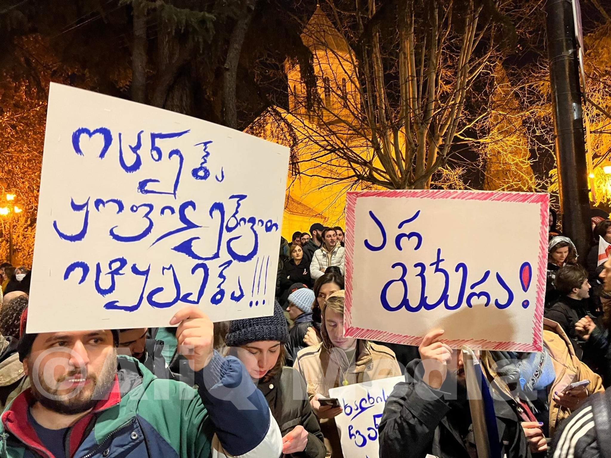 Ի դեպ, խորհրդարանի դիմաց բողոքի ակցիան վերսկսվել է։ Ցույցը բազմամարդ է։ Ռուսթավելիի պողոտան կաթվածահար է։ Ցուցարարները վանկարկում են «Չենք հավատում», այդպիսով բողոքելով իշխող կուսակցության հայտարարության դեմ։