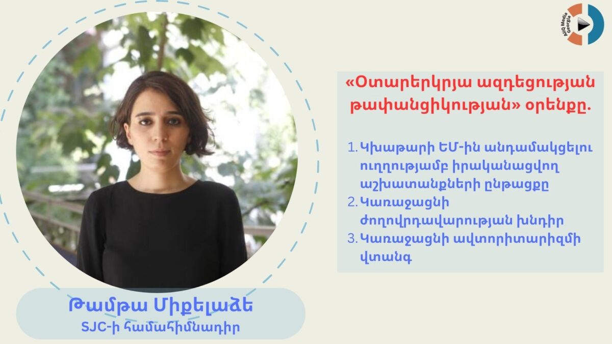 Վրաստանում արդեն երկրորդ շաբաթն է բուռն քննարկման առիթ է դարձել Վրաստանի իշխող «Վրացական երազանք» կուսակցության շարքերը լքած և հակաարևմտյան շարժում ձևավորած «Ժողովրդի ուժը» շարժման Վրաստանի խորհրդարանին ներկայացրած «Օտարերկրյա ազդեցության թափանցիկության» օրենքի նախագիծը: