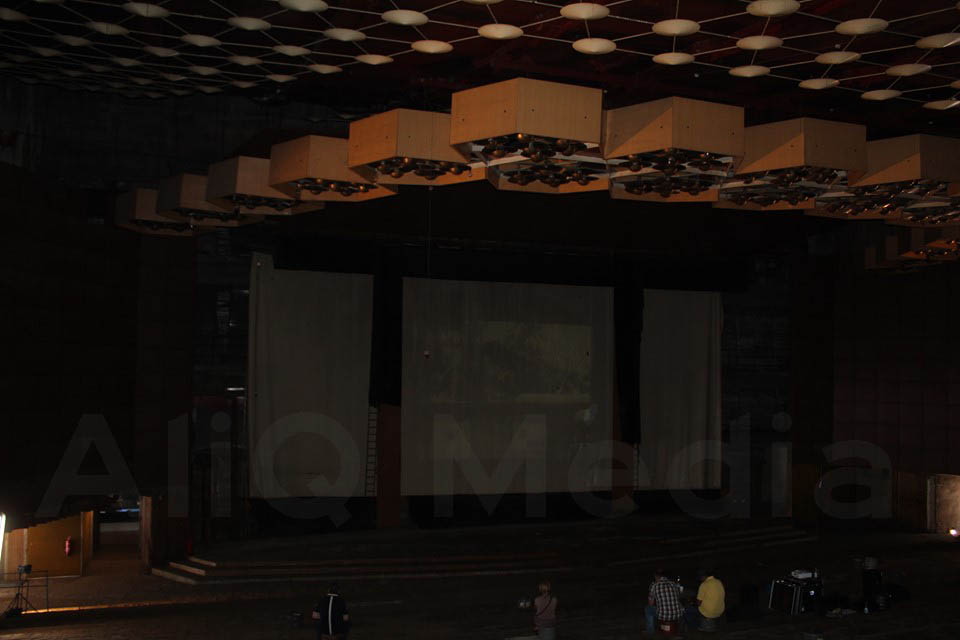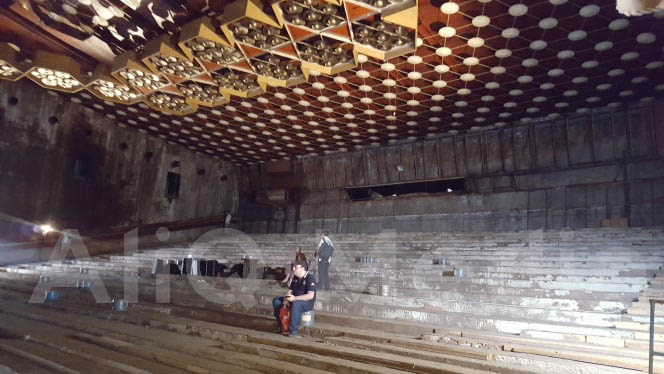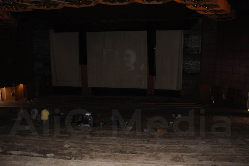 Քանի որ դահլիճի ֆոյեն զբաղեցրել են առևտրականները, մուտքը պատշգամբի կողմից է։ Դռնից ներս բացվում է երբեմնի 1000 նստատեղ ունեցող դահլիճի հատակը՝ շքեղ գորգերի ու նստարանների փոխարեն՝ ընդամենը ցեմենտ-բետոնե ծածկն է մնացել։