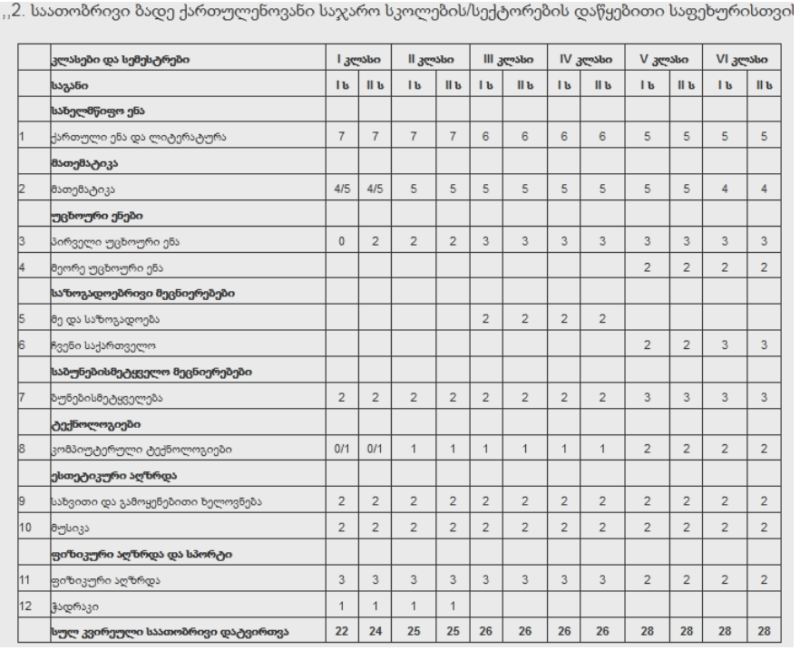 Վրաստանի հանրակրթական դպրոցների «Ազգային ուսումնական պլան»-ում (ԱՈՒՊ) տարրական դասարանների համար նոր փոփոխություններ են սահմանվել: