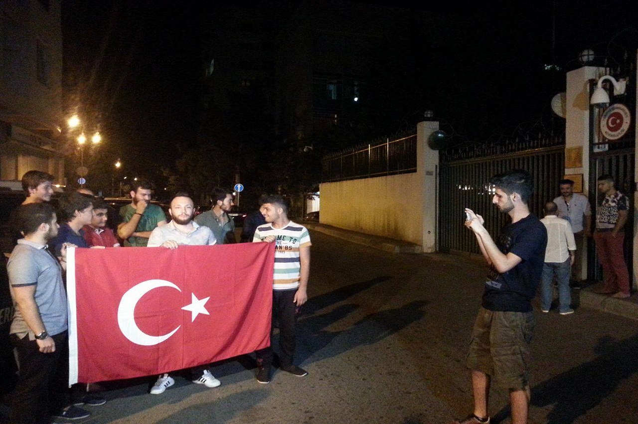 У посольства Турции в Грузии 16 июля, в 3 часа ночи собралось около двух  десятков молодых людей.