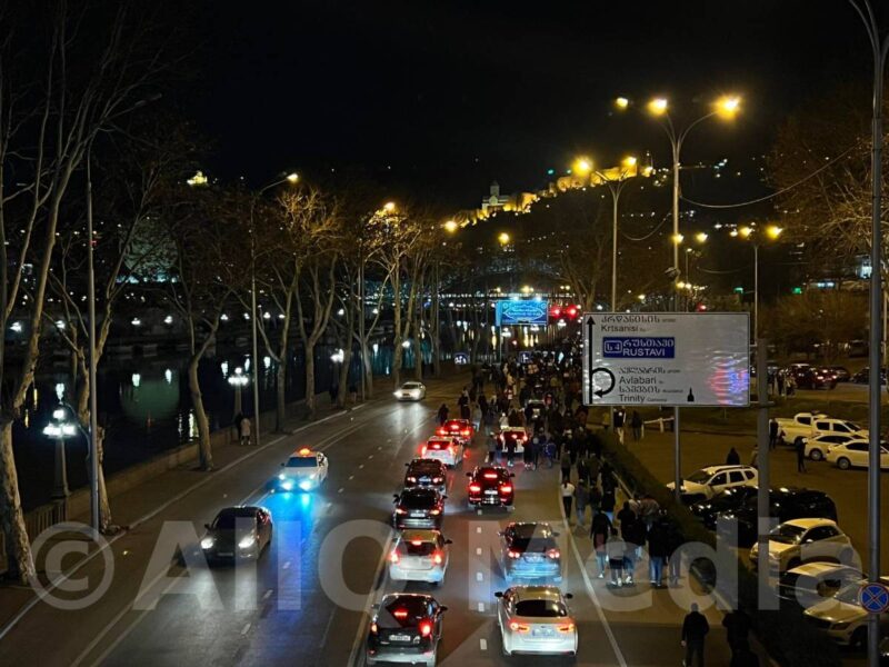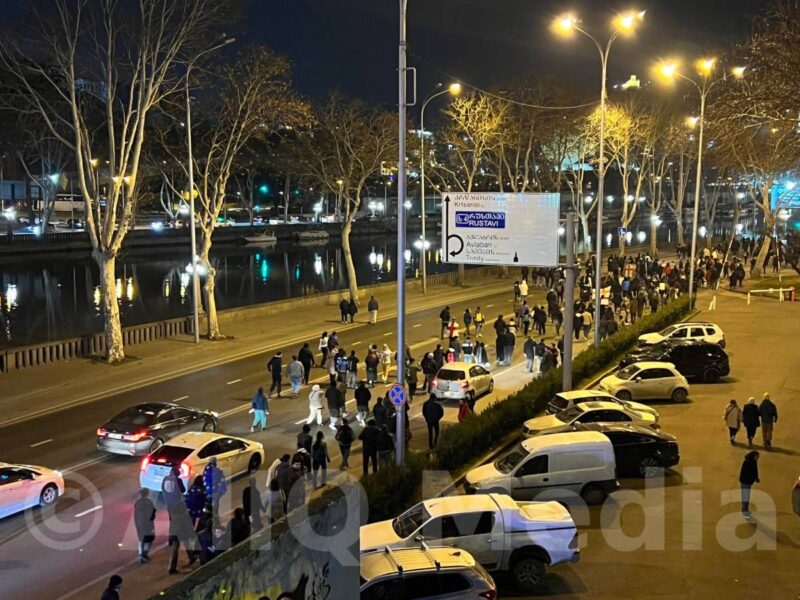 Ցուցարարների մի մասն էլ շարժվում է դեպի Վրաստանի իշխող «Վրացական երազանք» կուսակցության գրասենյակ: