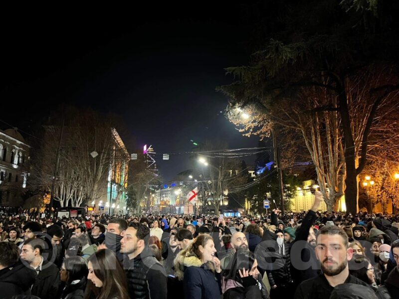Թբիլիսիի Ռուսթավելիի պողոտայում` խորհրդարանի մոտ, ժամը 19:00-ից վերսկսվել է «Օտարերկրյա ազդեցության թափանցիկության մասին» օրենքի նախագծի դեմ բողոքի ակցիան։