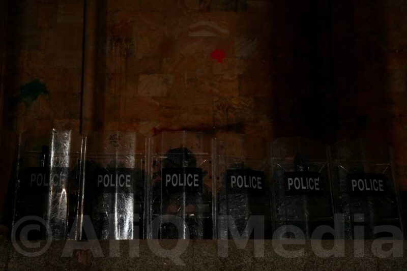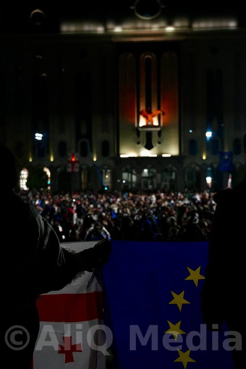 Թբիլիսիի Ռուսթավելիի պողոտայում գտնվող խորհրդարանի շենքի մոտ բողոքի ցույցը շարունակվում է: Տեղում աշխատում է «Ալիք Մեդիա Վրաստան»-ի նկարահանող խումբը: