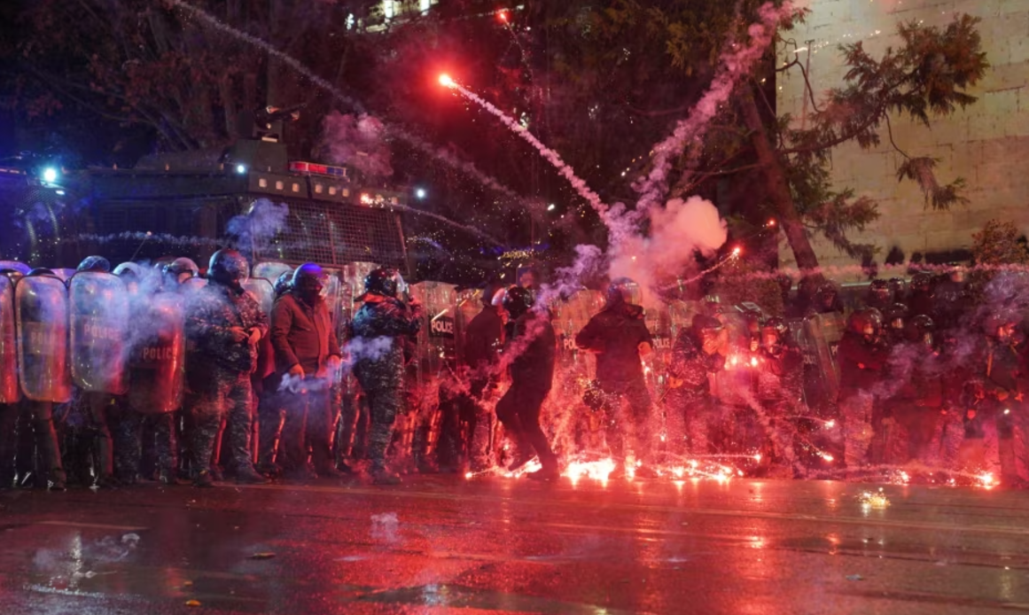 Դեկտեմբերի 3-ի լույս 4-ին՝ եվրոպամետ ցույցերի վեցերորդ գիշերը, Թբիլիսիում կրքերը չէին հանդարտվում: Ներքին գործերի նախարարության (ՆԳՆ) աշխատակիցներն ու հատուկջոկատայինները ցուցարարներին ցրելու համար օգտագործում էին ջրի շիթեր, արցունքաբեր գազ, ջրցան մեքենա, ռետինե փամփուշտ և այլ բիրտ միջոցներ: