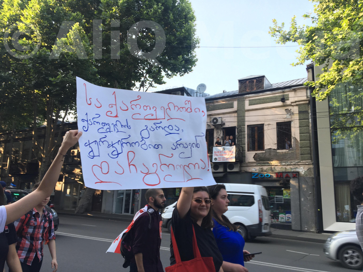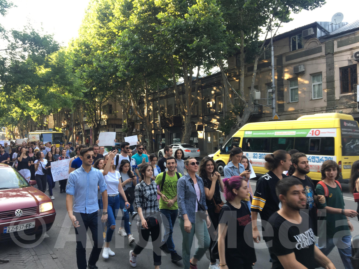 Ուսանողները բողոքարկում են նախօրեին խորհրդարանի շենքի մոտ զարգացած իրադարձությունները և ռուս պատգամավորի ներկայությունը Վրաստանի տարածքում ու խորհրդարանում:
