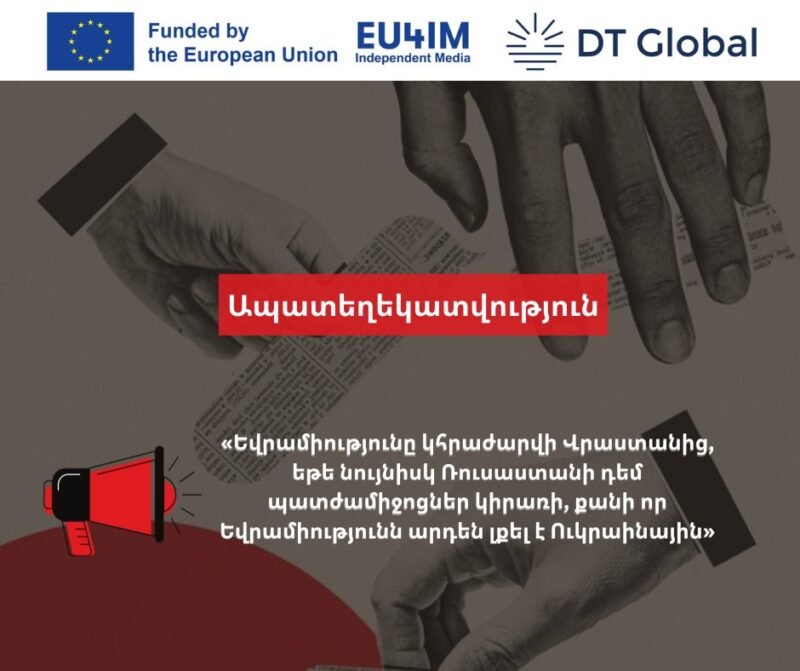 «Եվրամիությունը կհրաժարվի Վրաստանից, եթե վերջինս նույնիսկ Ռուսաստանի դեմ պատժամիջոցներ կիրառի, քանի որ Եվրամիությունն արդեն լքել է Ուկրաինային», — ապատեղեկատվությունը հակաարևմտյան է, նպատակ ունի ընկճելու Վրաստանի եվրոպական ձգտումները կեղծ տեղեկության միջոցով։