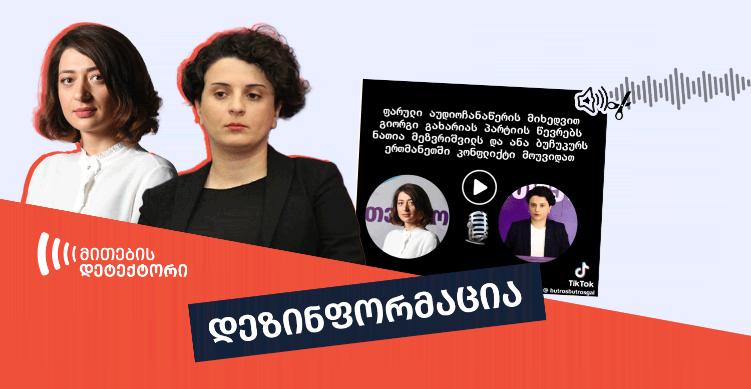 Սոցիալական ցանցերի վրացական տիրույթում հայտնված վիճաբանության աուդիոձայնագրությունները կապ չունեն ընդդիմադիր «Վրաստանի համար» կուսակցության անդամների հետ, գրել է փաստերի ստուգման «Միթերի դետեկտոր» հարթակը: