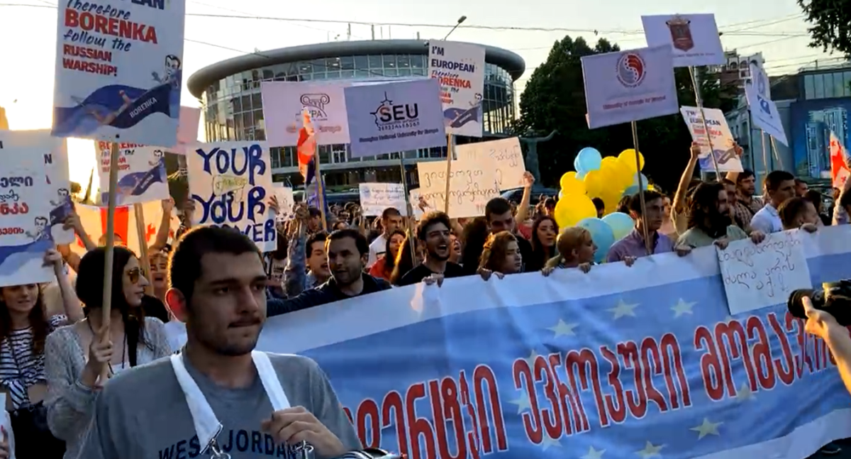 Ուսանողներն այսպիսով իրենց աջակցությունն են հայտնում «Սիրցխվիլիա» («Ամոթ է») քաղաքացիական շարժման նախաձեռնած «Տուն՝ դեպի Եվրոպա» խորագրով հանրահավաքին: