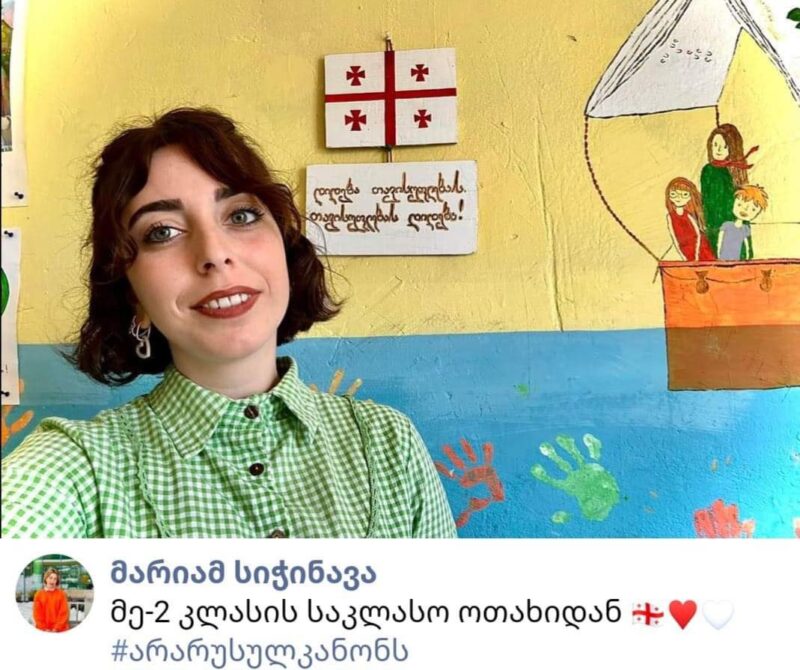 Ուսուցիչներն իրենց սոցիալական կայքերում հրապարակել են լուսանկար դպրոցական դասասենյակից՝ ի ցույց դնելով այն փաստը, որ չեն պատրաստվում մասնակցել այսօրվա՝ ապրիլի 29-ին նախատեսված օրենքին աջակցող ցույցին։ Գրառման տակ նրանք տեղադրել են «Ո՛չ ռուսական օրենքին» հեշթեգը։