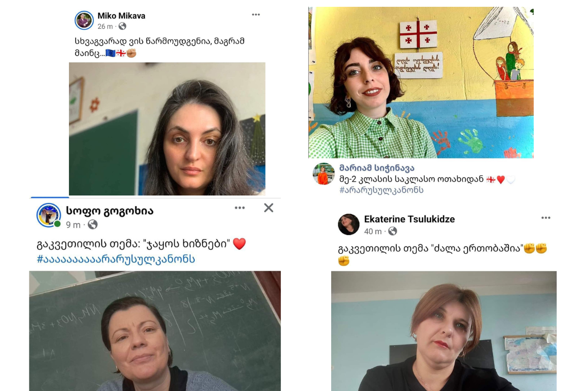 Ուսուցիչներից մեկը հետևյալ գրառումն է կատարել. «Այլ կերպ չէի էլ պատկերացնում, բայց` ամեն դեպքում»։ Մեկ այլ ուսուցիչ գրել է, «Այսօրվա դասի թեման՝ ուժը միասնության մեջ է։ Ո՛չ ռուսական օրենքին»։