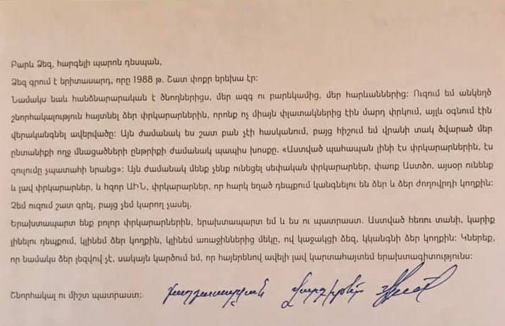 Առաջին ալիքն ու մի քանի այլ լրատվամիջոցներ՝ ինչպեսիք են «Նեթգազեթի»-ն և «Իմեդի» հեռուստաընկերությունը հրապարակել են ՀՀ քաղաքացու շնորհակալական նամակն ուղղված Հայաստանի Հանրապետությունում Վրաստանի արտակարգ և լիազոր դեսպանին: Տվյալ նամակը հրապարակել էր Վրաստանի դեսպանատունը՝ նշելով, որ շնորհակալական նամակներ շատ են ստանում: