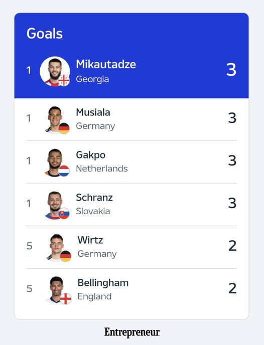 Եվրոպայի առաջնության ավարտին մնացել է ընդամենը 3 հանդիպում, Վրաստանի հավաքականի ֆուբոլիստները դեռևս ցուցանիշներում առաջատար են։ Մասնավորապես՝ Գիորգի Միքաուտաձեն և Գիորգի Մամարդաշվիլին գլխավորում են ՈւԵՖԱ-ի երկու ցուցանիշ։