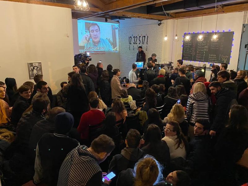 «Պառլամենտ» բարում տեղի ունեցած տեսակապով զրույցը: Լուսանկարը Maiko Javakhishvili ֆեյսբուքյան էջից:
