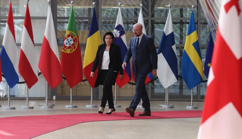 Վրաստանի նախագահ Սալոմե Զուրաբիշվիլին Twitter-յան իր միկրոբլոգում Եվրոպական խորհրդի նախագահ Շառլ Միշելի հետ հանդիպումից հետո գրել է՝ Վրաստանը կվերադառնա եվրոպական ընտանիք: