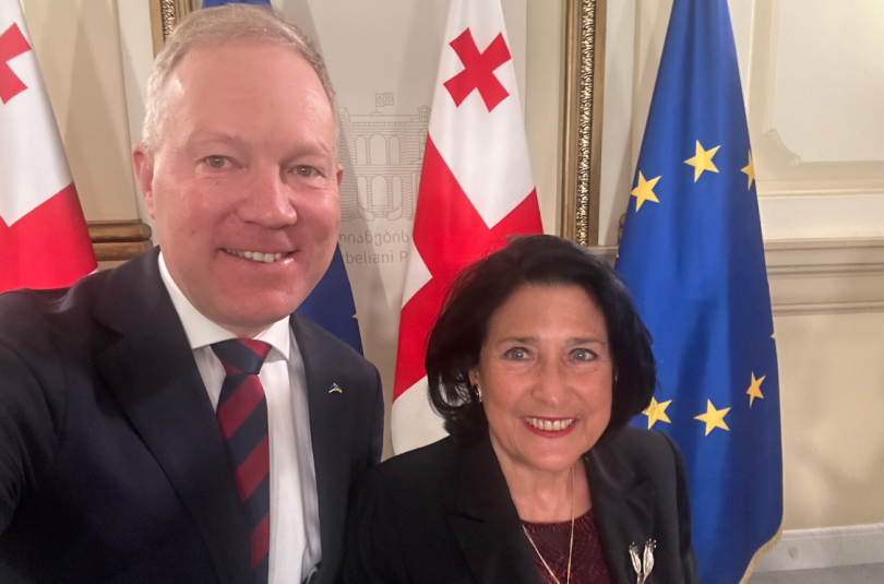 Թբիլիսիում այցով գտնվող Էստոնիայի խորհրդարանի արտաքին հարաբերությունների հանձնաժողովի նախագահ Մարկո Միհկելսոնը X սոցիալական ցանցում հրապարակել է նախագահ Զուրաբիշվիլիի հետ իր լուսանկարը և աջակցություն հայտնել վրաց ժողովրդին։
