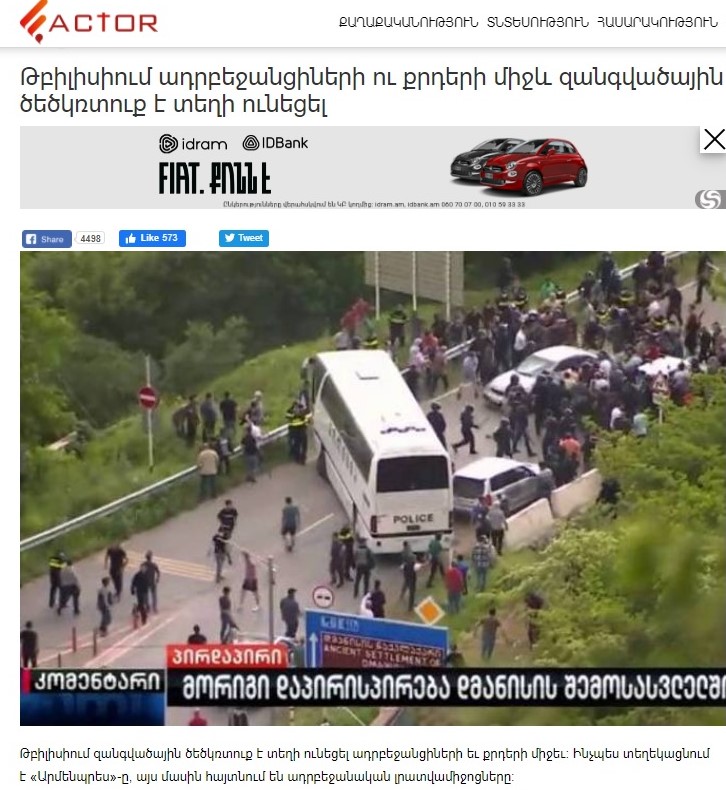 Հայաստանյան առաջատար «Արմենպրես» լրատվական գործակալությունն առաջիններից էր, որ ներկայացրել էր տեղի ունեցածը, որից էլ մյուս կայքերն արտատպել էին։ Ի դեպ՝ անդրադարձի նախնական նկարը Դմանիսիում օրեր առաջ տեղի ունեցած կոնֆլիկտի կադրերից էր, սակայն ժամեր անց, լուսանկարը փոխվեց:
