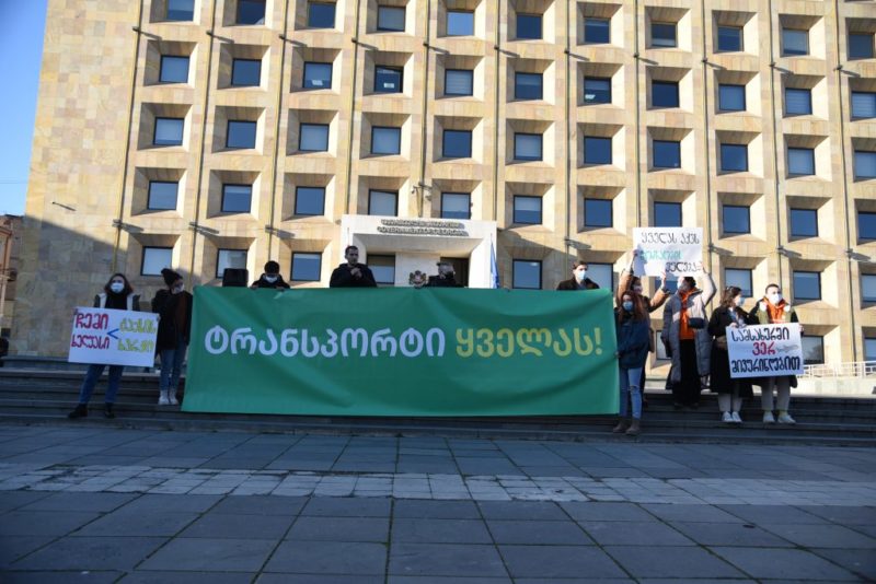 Եվս մեկ բողոքի ակցիա էլ այսօր անցկացվել է խորհրդարանի շենքի դիմաց: «Միասնական երիտասարդությունը Վրաստանի համար» կազմակերպությունը նույնպես կառավարությանը դիմել է հանրային տրանսպորտի արգելքը վերացնելու և երկիրը բացելու պահանջով: Ցուցարարները Վրաստանին անվանում են «պահածոյացված երկիր»: